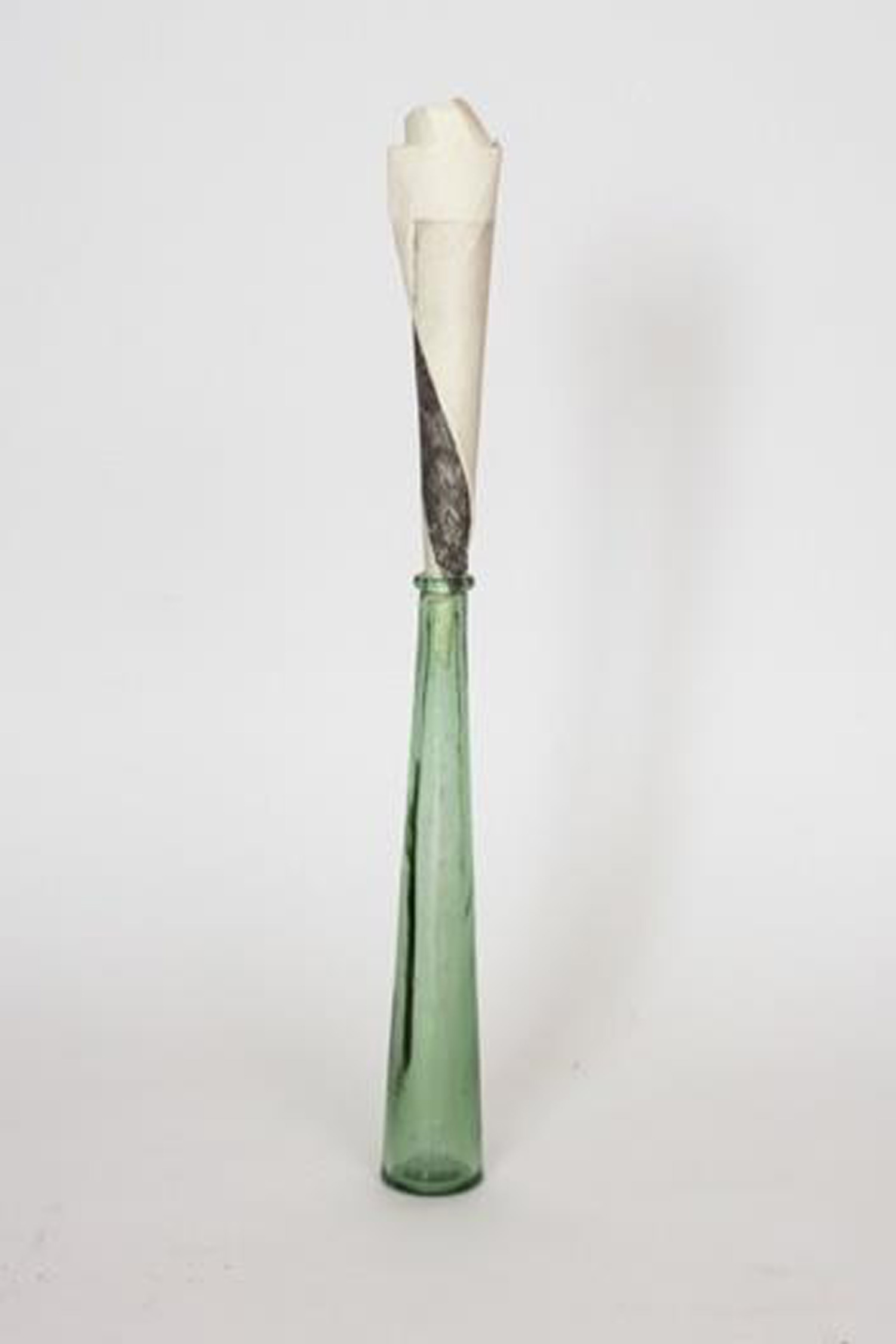 Engraving and green glass bottle.